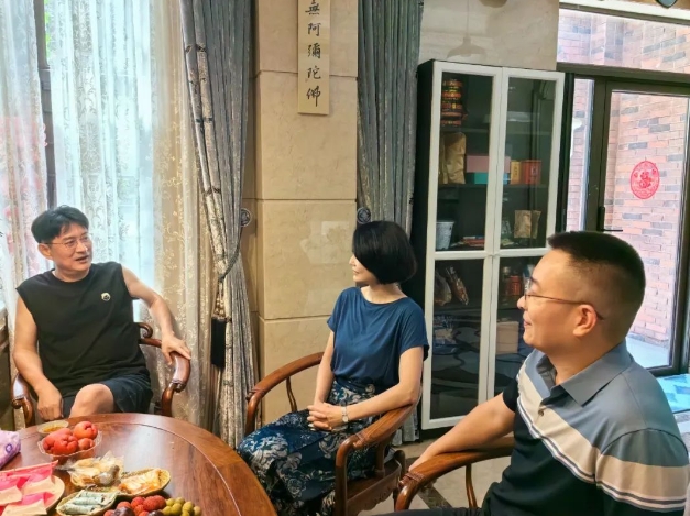 7月3日,丝袜av 党群工作部部长黄相钰拜访“新丝袜av人”台籍明星黄安,就深化两岸融合发展等事宜进行交流交谈。省政协委员、省广播影视集团东南卫视新闻主播艾珂竹共同前往。
